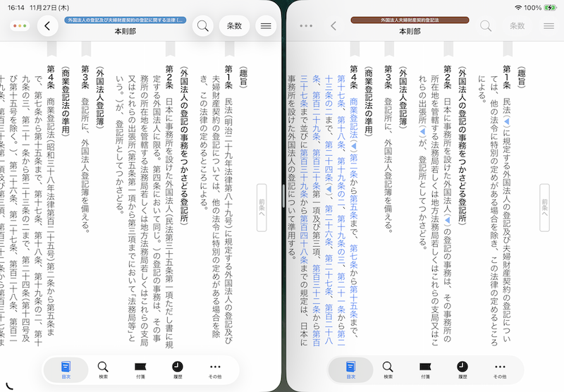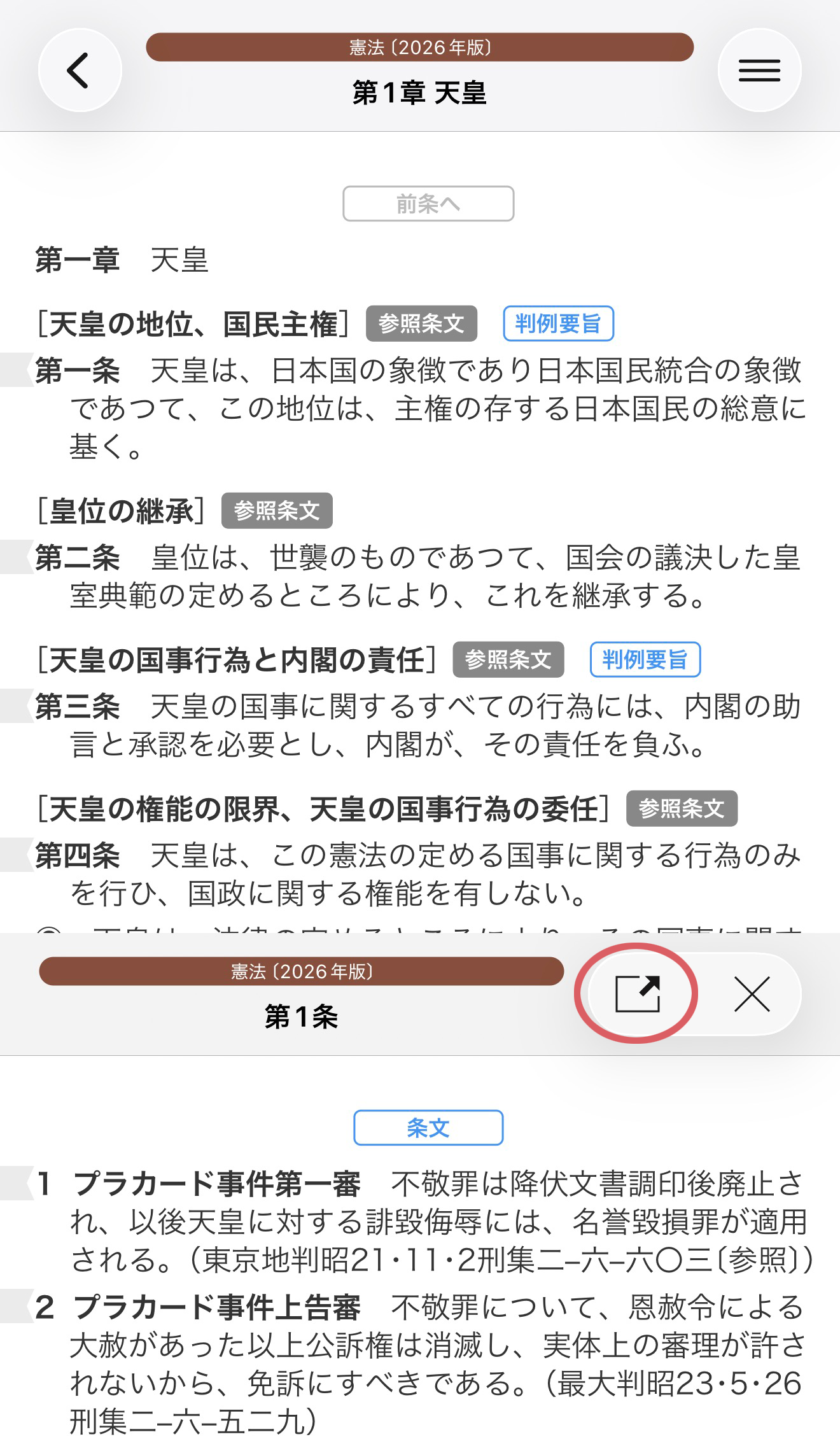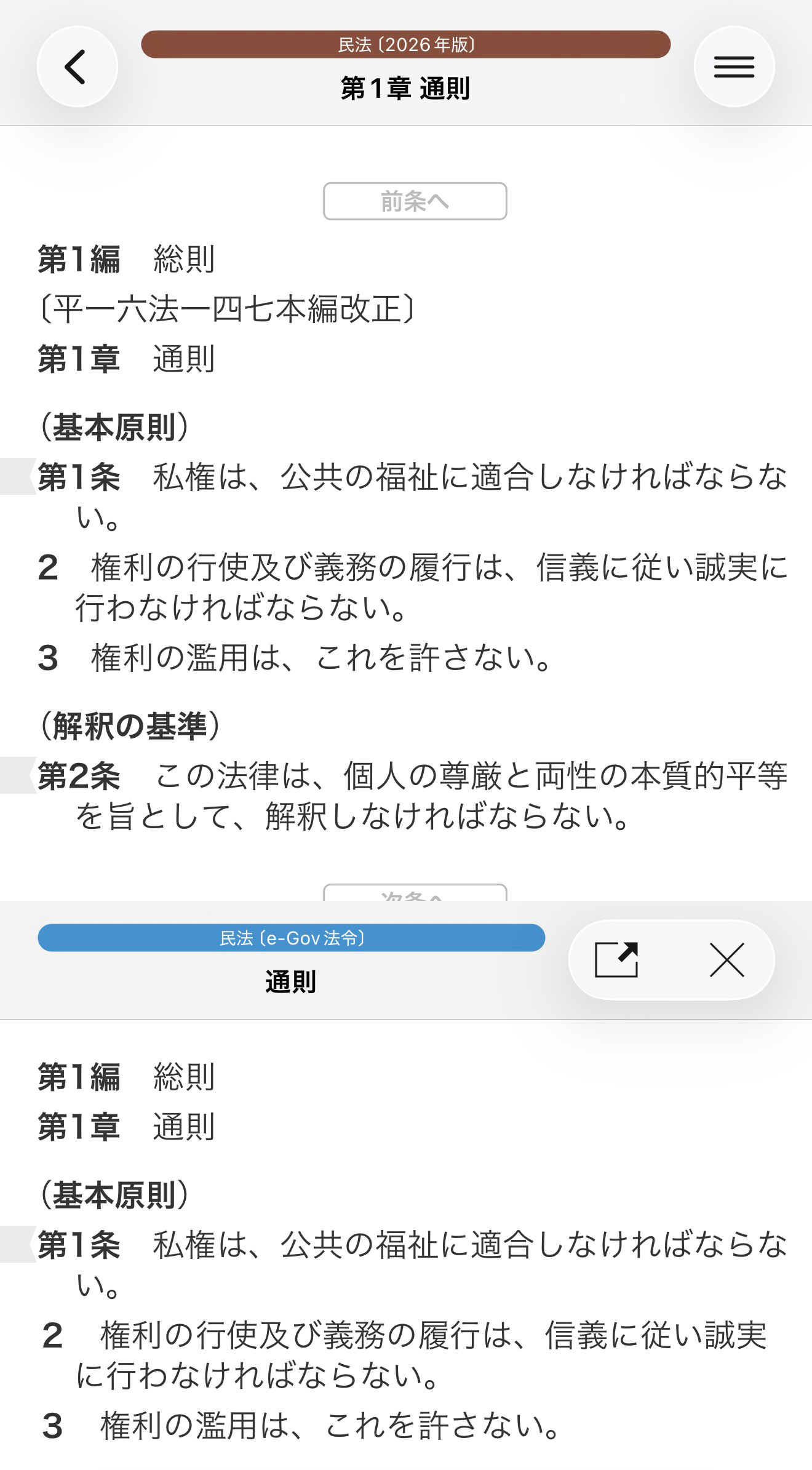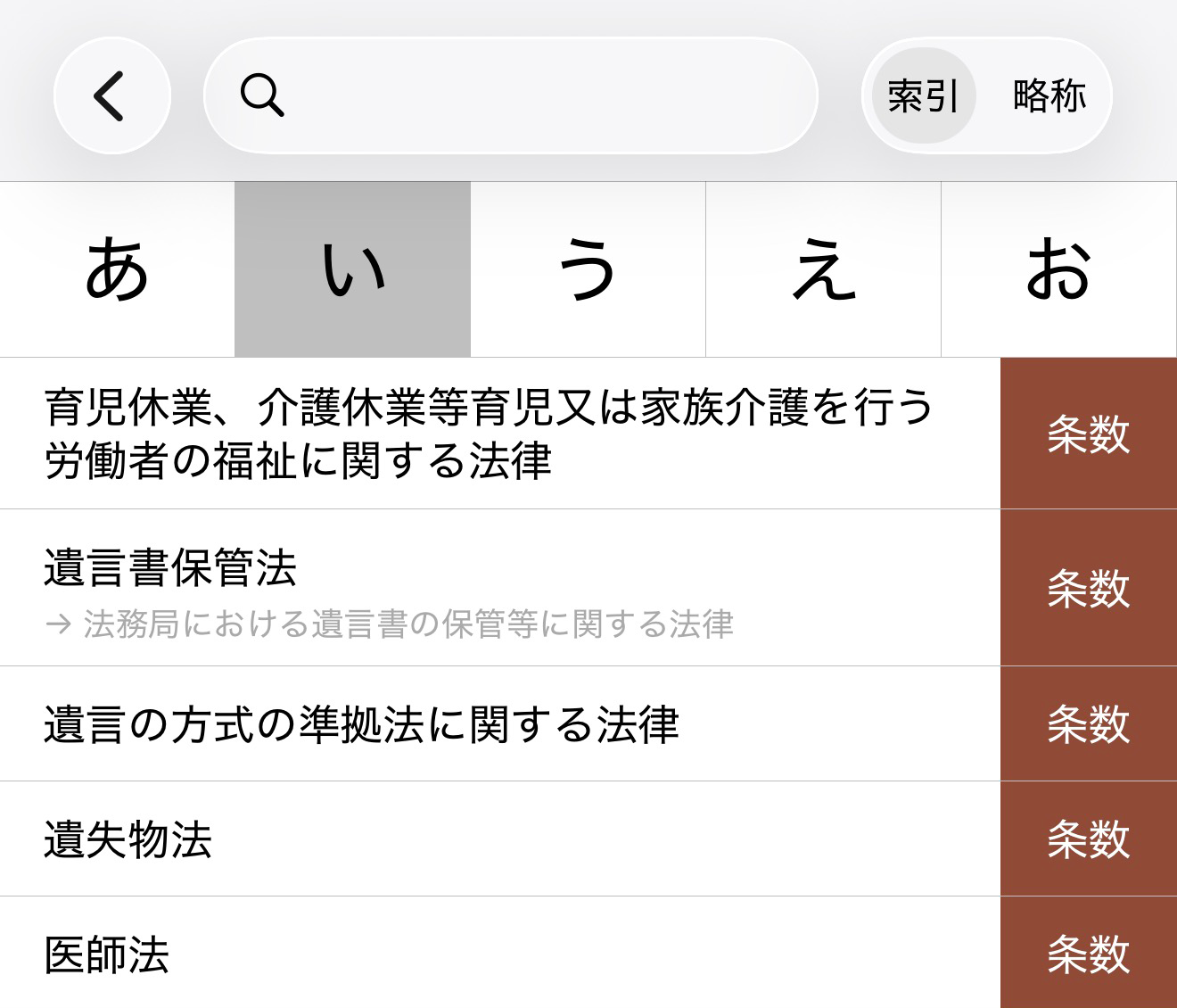 このページでは「六法 by 物書堂」の使い方を説明します。この説明はバージョン1.13に基づいたものとなるため、一部説明で使用している画像が本製品と異ることがあります。説明を見るには、各項目名をクリックまたはタップすることで開くことができます。また、下の全項目を開くボタンからすべての項目を開くことができます。